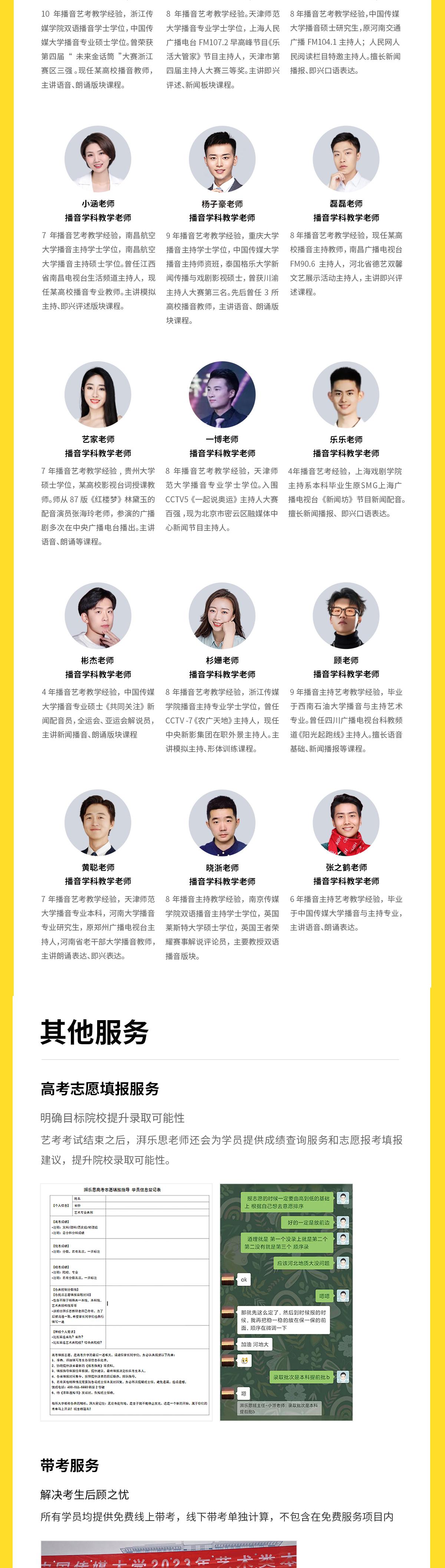 立足于艺考变化大趋势,熟悉全国各省份考情及考试内容,能根据学生具体需求进行1v1艺考规划,从根本上解决学生不知道、不会考、如何考几大核心难题,服务全程,为艺考生保驾护航